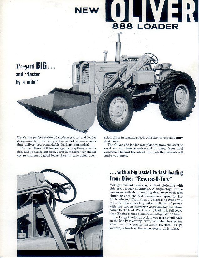 A 4 page brochure in excellent condition for the Oliver 888 wheeled loader, dated 1960.
