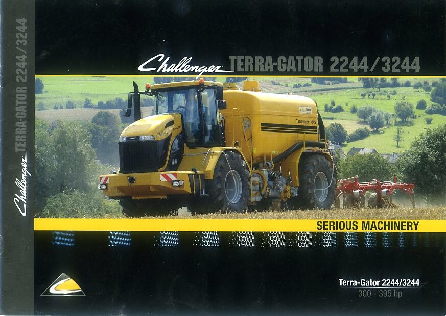 An 8 page brochure for the Challenger Terra-Gator 2244 & 3244 machines, dated 2009. The brochure is in good condition but has very slight staining to the lower edge and rear cover.