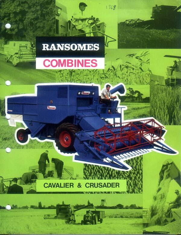 A 4 page brochure with fold-out flap in good condition for the Ransoms Cavalier and Crusader combines, dated 1967; hole-punched.
