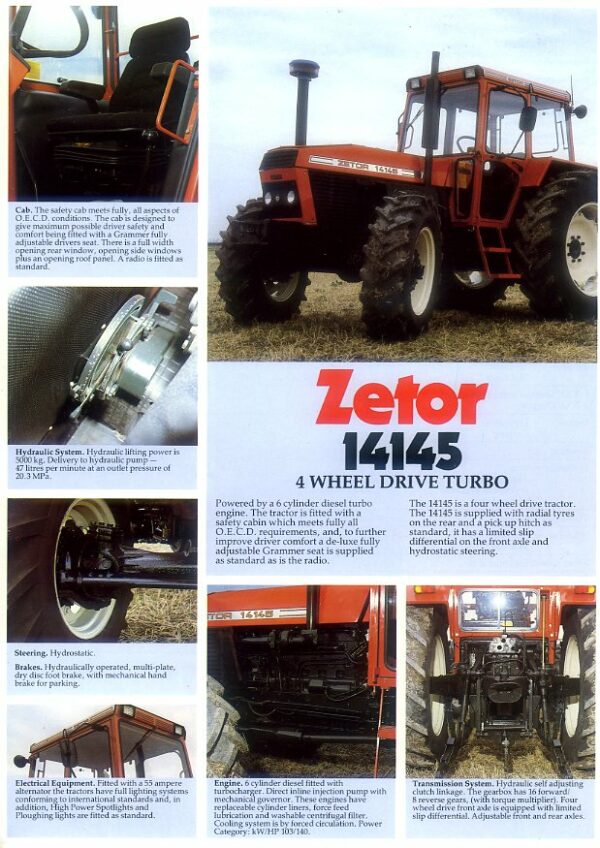 A 2 sided leaflet in mint condition for the 140hp Zetor 14145 tractor; English text.