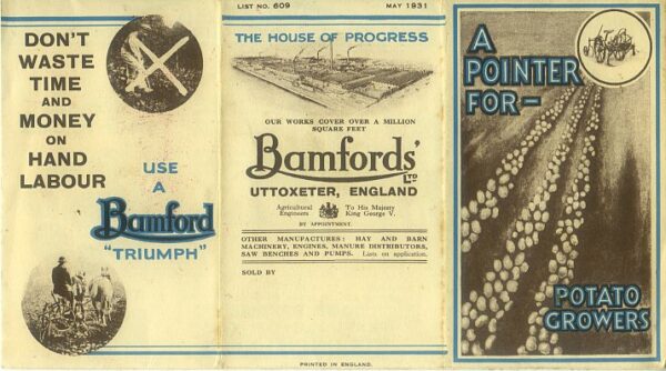 A small fold-out brochure in excellent condition for Bamfords Triumph potato diggers, dated 1931.