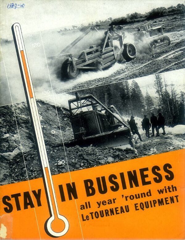 A 16 page brochure for LaTourneau construction and earthmoving equipment, dated 1938 and issued by Jack Olding. The brochure is in very good condition but has a small tape repair to the lower edge of the spine.