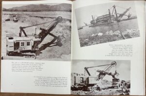 A 76 page booklet covering Bucyrus-Erie’s progress in excavation machinery during war and peace. Published at the end of the Second World War, this is a remarkable photographic record of the various applications for Bucyrus-Erie excavators, cranes, oil drilling machinery and other products including weapons production. The booklet is in excellent condition and is an extremely rare item.