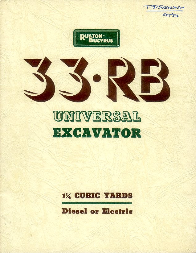 A 28 page brochure in mint condition for the Ruston-Bucyrus 33-RB excavator, dated 1954. A scarce and high quality brochure in superb condition with a small annotation on the cover.