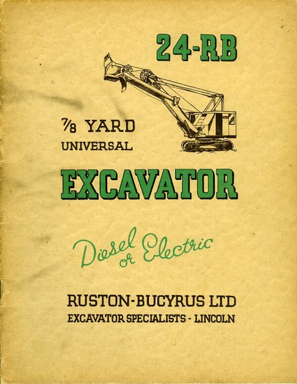A 36 page brochure in excellent condition for the Ruston-Bucyrus 24-RB excavator, dated 1944.