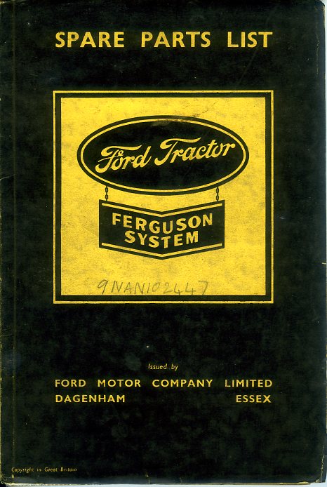 A parts book for the Ford 9N tractor with Ferguson System, dated November 1944. A British parts book covering the 9NAN model. The book is in very good condition but the cover has come away from the binding.