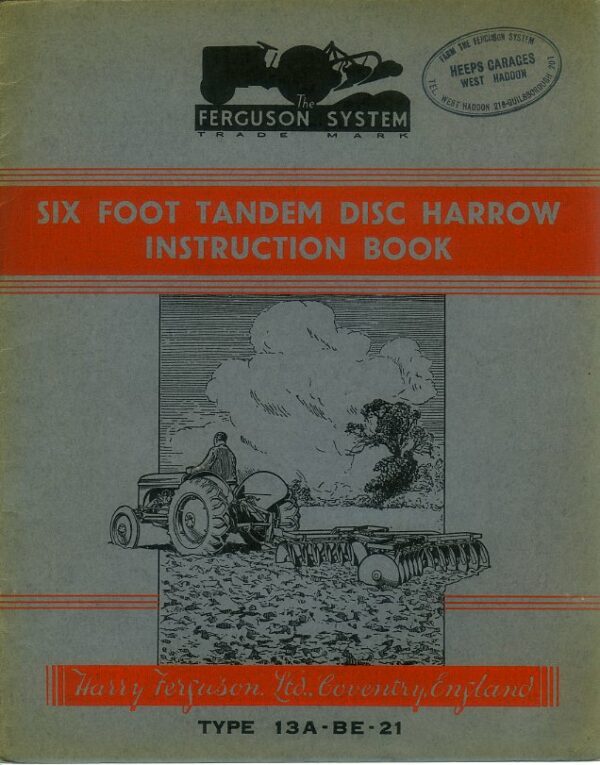 An instruction book in almost mint condition for the Ferguson 6ft tandem disc harrow, dated 1950. This is one of the scarcer and earlier large-format Ferguson instruction books.