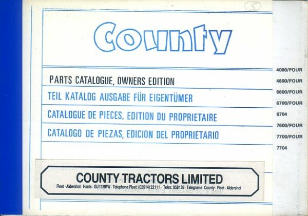 An owners parts catalogue in excellent condition for the County 4000-Four, 4600-Four, 6600-Four, 6700-Fpour, 6704, 7600-Four, 7700-Four & 7704 tractors.