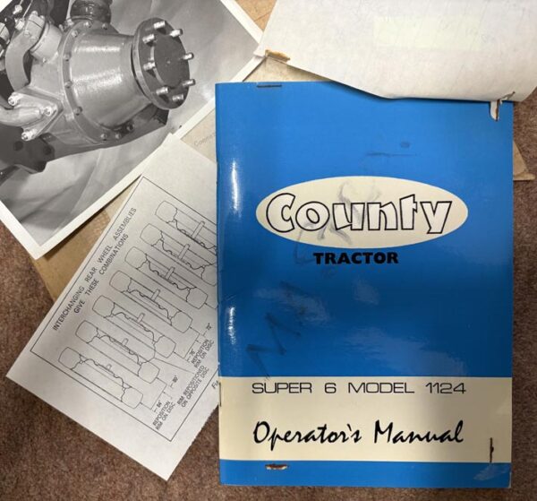 An operators manual in excellent condition for the County Super 6 Model 1124 tractor, dated 1971. A note stapled to the front cover states that this was the master copy and was marked to show the photographers (Ben Muir) referenced to illustrations. it is complete with a photograph of the front hub, an illustration on track adjustment and is complete with the original envelope sent to County by Ben Muir Photographic Services. This is a real piece of history.