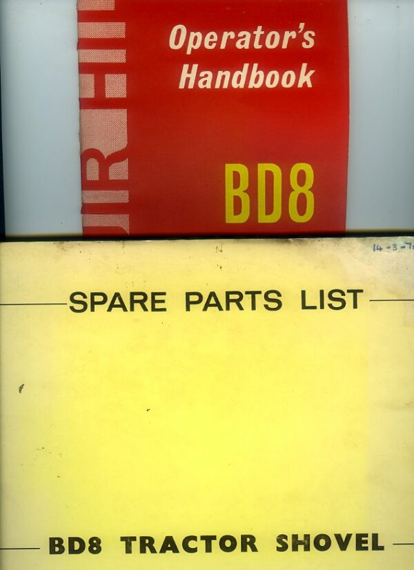 An operators manual for the Muir-Hill BD8 tractor shovel, dated 1966 complete with a parts book dated 1965.ย  The operators book is in excellent condition but he parts book has slight damp staining to a few pages.