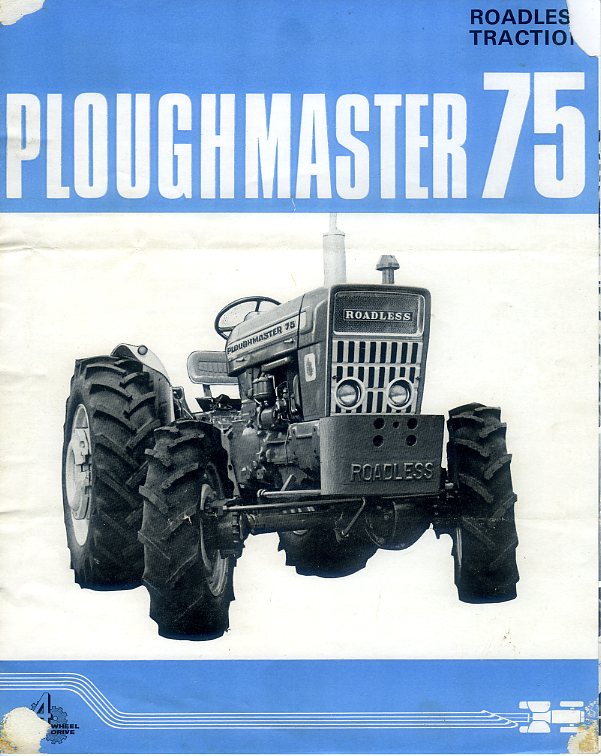 A 4 page brochure for the Roadless Ploughmaster 75 tractor, dated 1968. The brochure is in good/fair condition but with some marks/damage to corners of the cover.