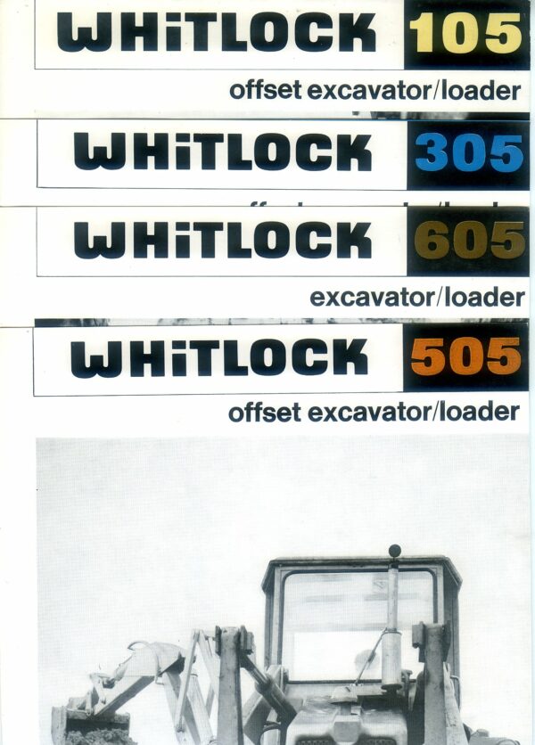 Brochures for the Whitlock 105, 305, 505 & 605 excavator loaders. All 4 brochures are in mint condition and have 4 pages and are dated 1967. They are complete with a card folder in very good condition. The Whitlock machines were based on Ford or International skid units.