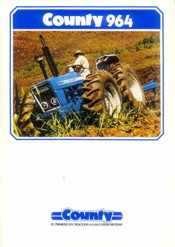 A 2 sided leaflet in mint condition for the export version of the County 964 tractor; Spanish text.