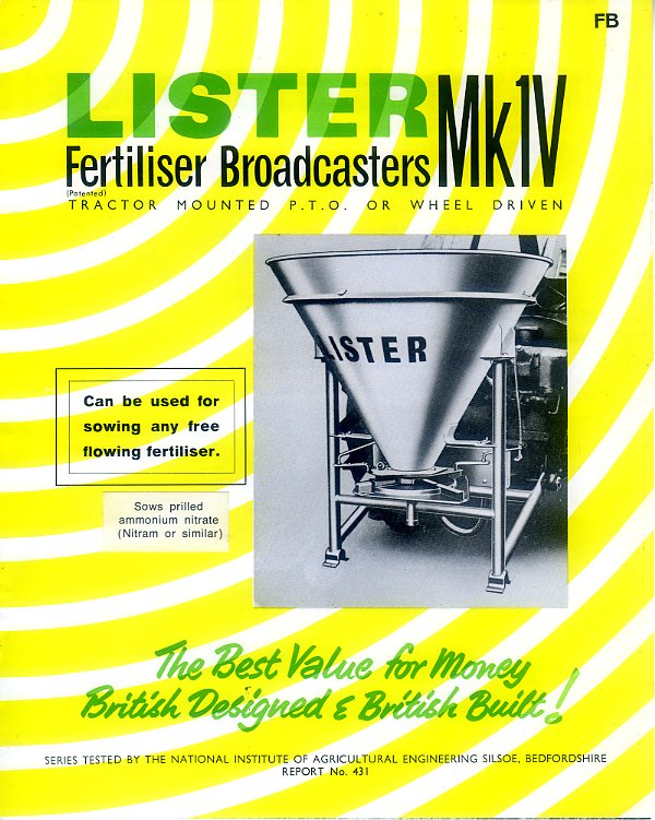 A 4 page brochure in mint condition for Lister fertilisers broadcasters MklV including mounted and trailed models, dated 1967.
