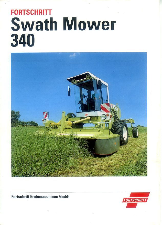 A 6 page brochure in mint condition for the Fortschritt 340 self-propelled swath mower, dated 1993; English text.