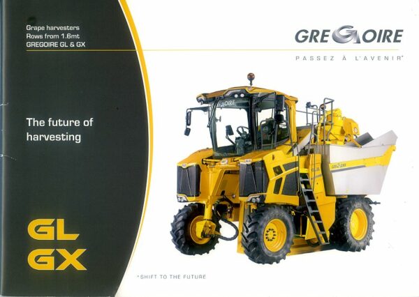 A 36 page brochure in excellent condition for Gregoire GL & GX grape harvesters; English text, dated 2007.