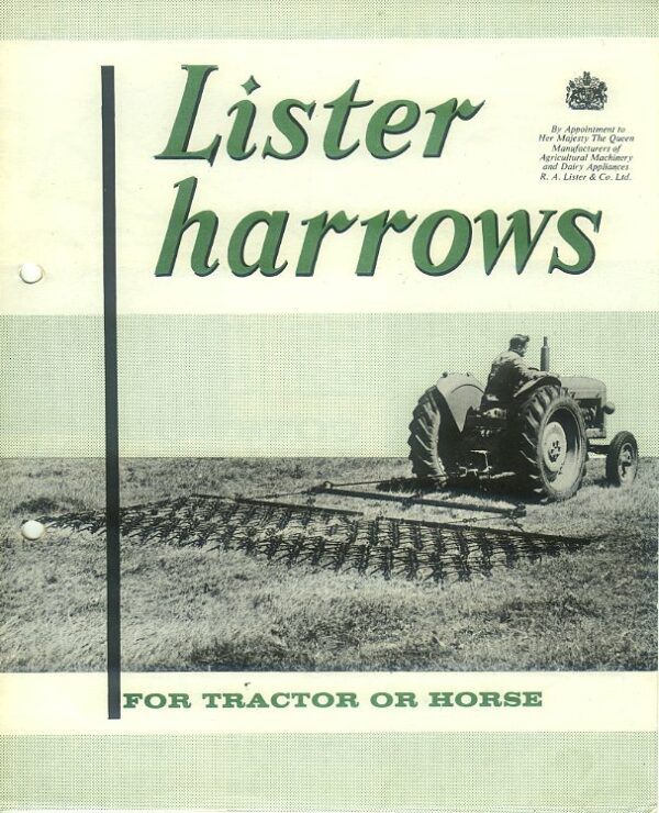 A 4 page brochure in mint condition for Lister harrows, dated 1964, hole-punched.