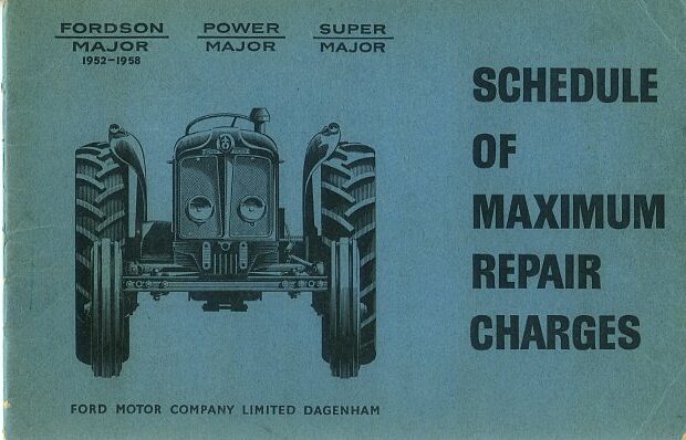 Fordson schedule of maximum repair charges booklet for the Major, Power Major and Super Major tractors, dated 1963. The booklet is in excellent condition and was part of the literture pack issued with the Super Major.