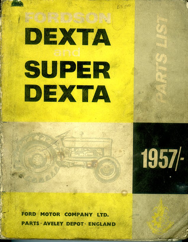 A parts book in good but used condition for the Fordson Dexta and Super Dexta tractors, dated 1963. There is a partial split to the cover.