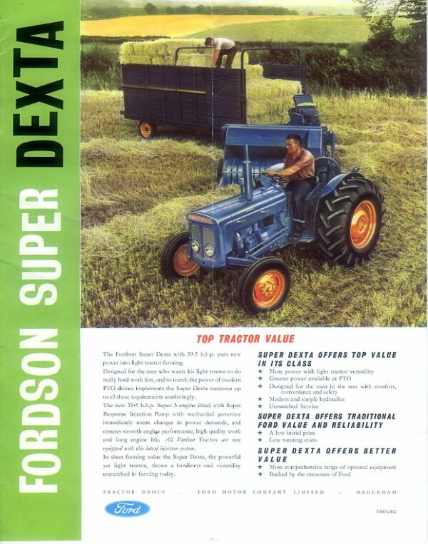 An 8 page brochure for the Fordson Super Dexta, dated 1962. The brochure is in excellent condition but has been folded.