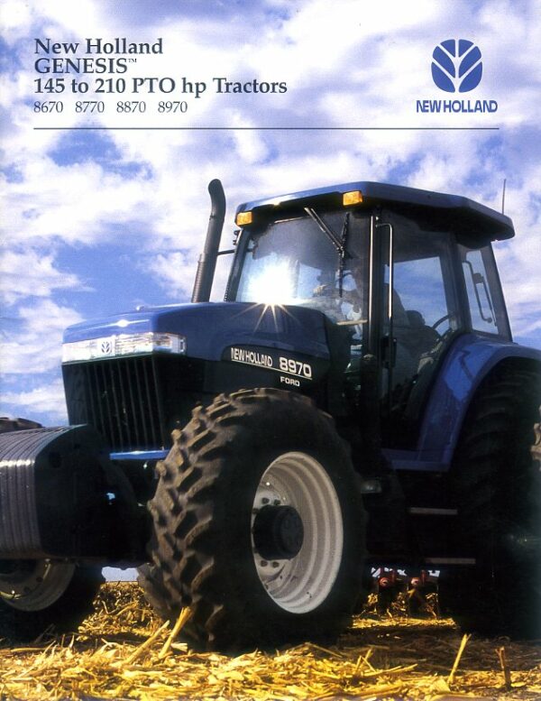 A 32 page North American brochure in mint condition for the New Holland Series 70 Genesis tractors, dated 1998; USA. This was one of the last brochures for the Ford Series 70 models.