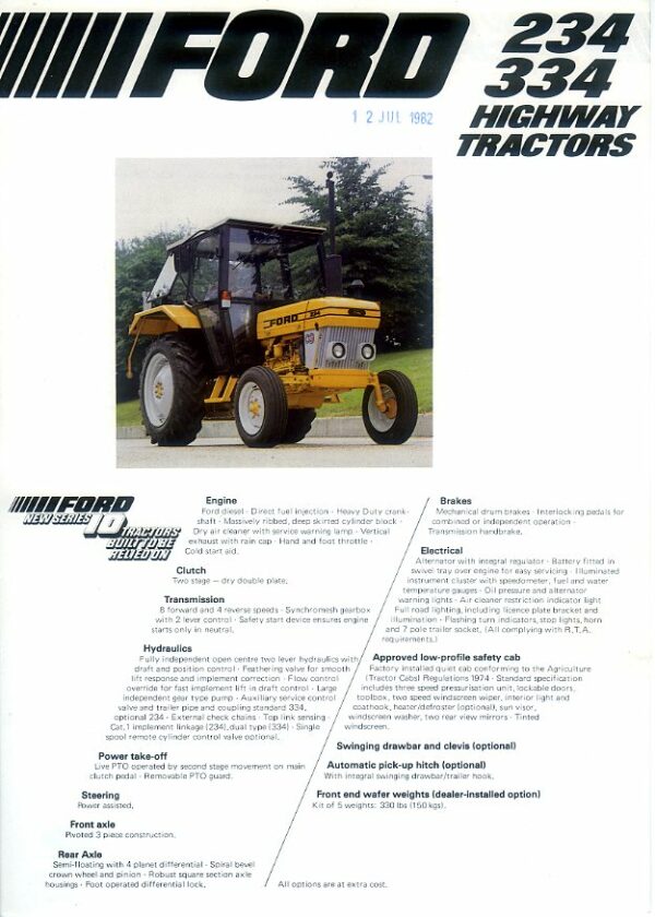 A 2 sided leaflet in mint condition for the Ford 234& 334 Highway tractors, dated 1982.