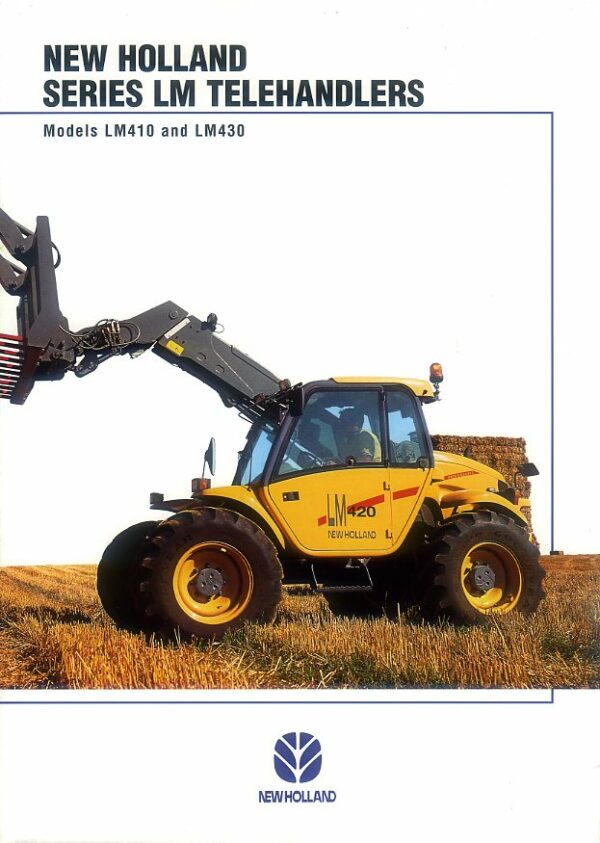 A 20 page brochure in mint condition for the New Holland LM410 & LM430 Telehandlers, dated 2000.