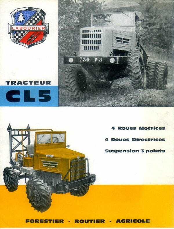 A 4 page brochure in excellent condition for the French Labourier CL5 forestry tractor complete with a coloured decal; French text.