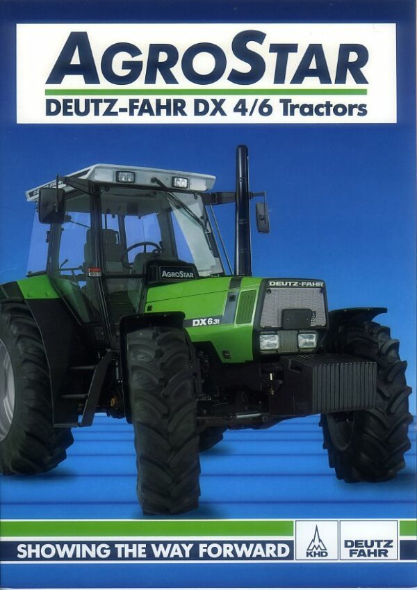 A 30 page brochure complete with a 4 page spec sheet, in mint condition, for the Deutz AgroStar DX4 & DX6 tractors, dated 1990;English text.