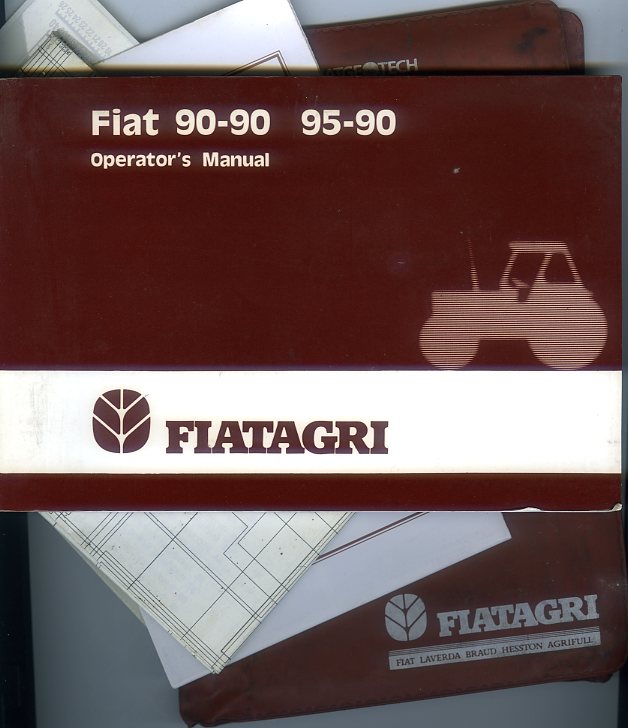 An operators manual for the Fiat 90-90 & 95-90 tractors, dated 1990. It is complete with a wiring diagram, a servicing chart and a gear speed decal, all in its original plastic wallet. The plastic wallet is a little grubby, but the contents are in excellent condition.