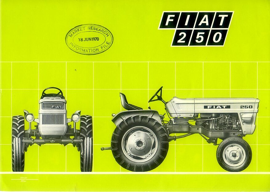 A 2 sided leaflet in excellent condition for the Fiat 250 tractor, dated 1970; English text.