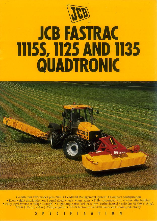A 10 page brochure in mint condition for the JCB Fastrac 115S, 1125 & 12135 Quadtronic tractors, dated 1998.
