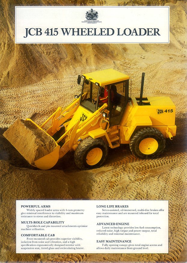 A 6 page brochure in mint condition for the JCB 415 wheeled loader, dated 1989.