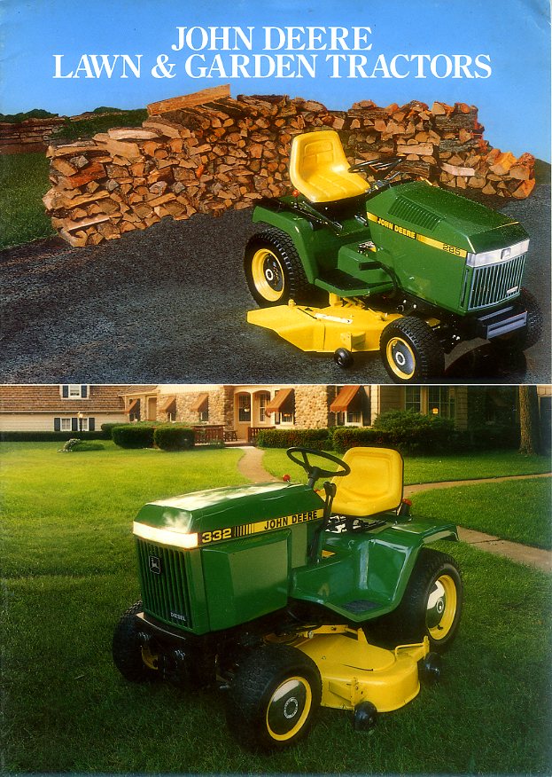 A 12 page brochure in excellent condition for John Deere 285 & 332 lawn and garden tractors, dated 1988.