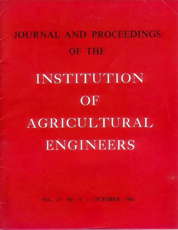 The Journal & Proceedings of the Institution of Agricultural engineers, October 1961, in very good condition. The journal contains several interesting articles including one on machinery in British forests which covers the development of the County Swamp tractors and timber extraction by helicopter.