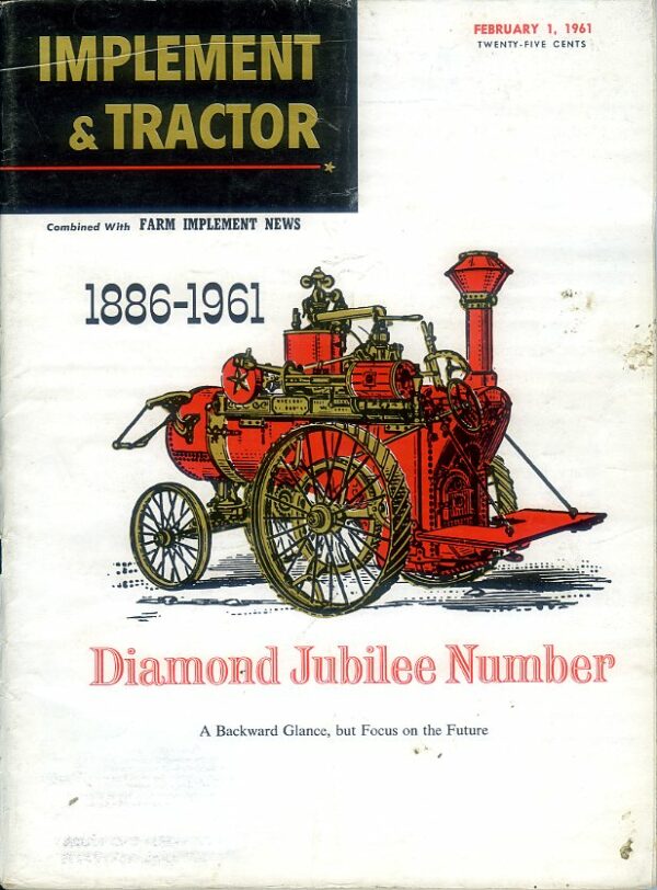 Implement & Tractor magazine dated 1 February 1961 – the Diamond Jubilee issue celebrating 1886-1961. An American magazine with more than 100 pages in very good condition. Many interesting articles on the major milestones in farm mechanisation. There is also a full colour supplement on Ford Select-O-Speed tractors in the centre pages.
