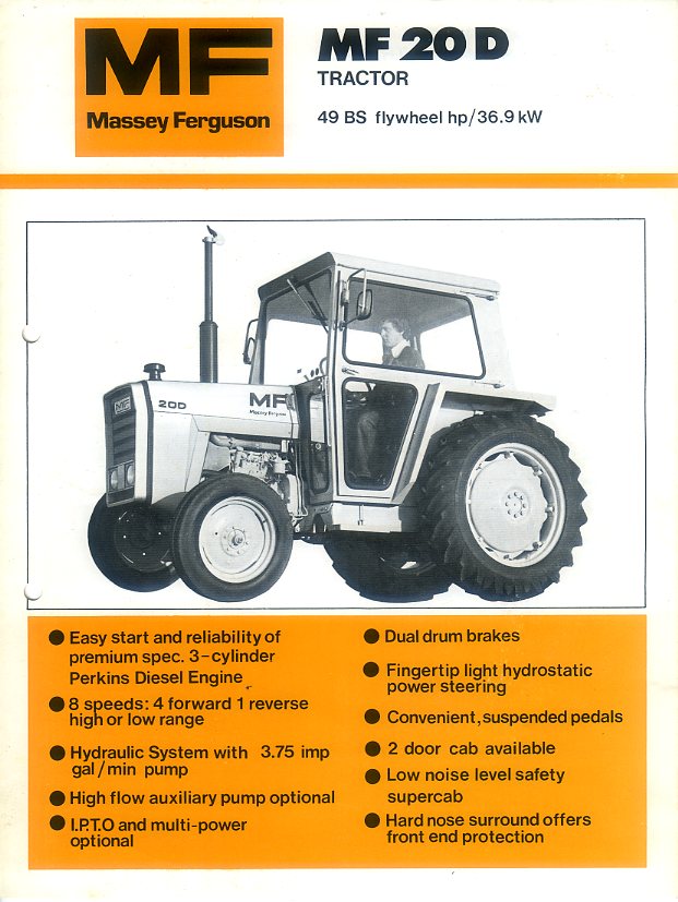 A 6 page brochure in mint condition for the Massey Ferguson 20D industrial/highway tractor, dated 1978; hole-punched.
