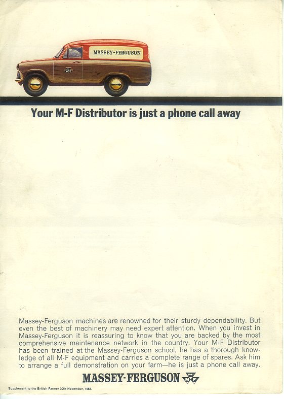A 6 page supplement in very good condition – the Massey Ferguson Guide to Progressive Farming Autumn & Winter, dated 1963. A very attractive item.