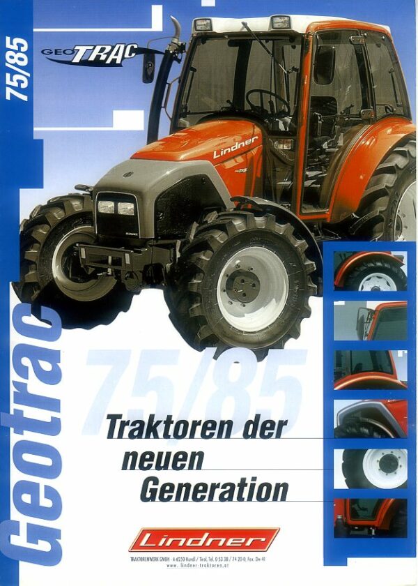 An 8 page fold-out brochure in mint condition for the Lindner Geotrac 85 & 75 tractors, dated 2001; German text.