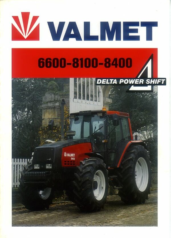 An 8 page fold-out brochure in excellent condition for the Valmet 6600, 8100 & 8400 Delta Powershift tractors, dated 1993; English text.