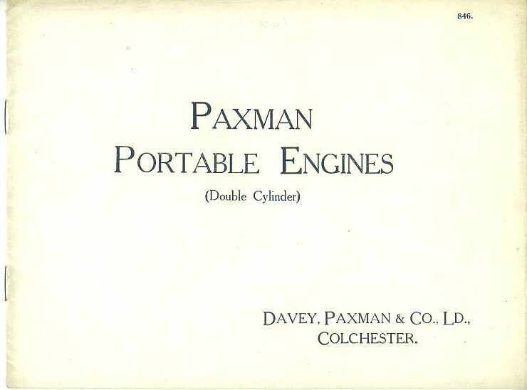 A 20 page brochure in excellent condition for its age for Davey Paxman steam portable engines, dated 1924. We are not sure whether the brochure was issued like this or whether it should have had a card cover.