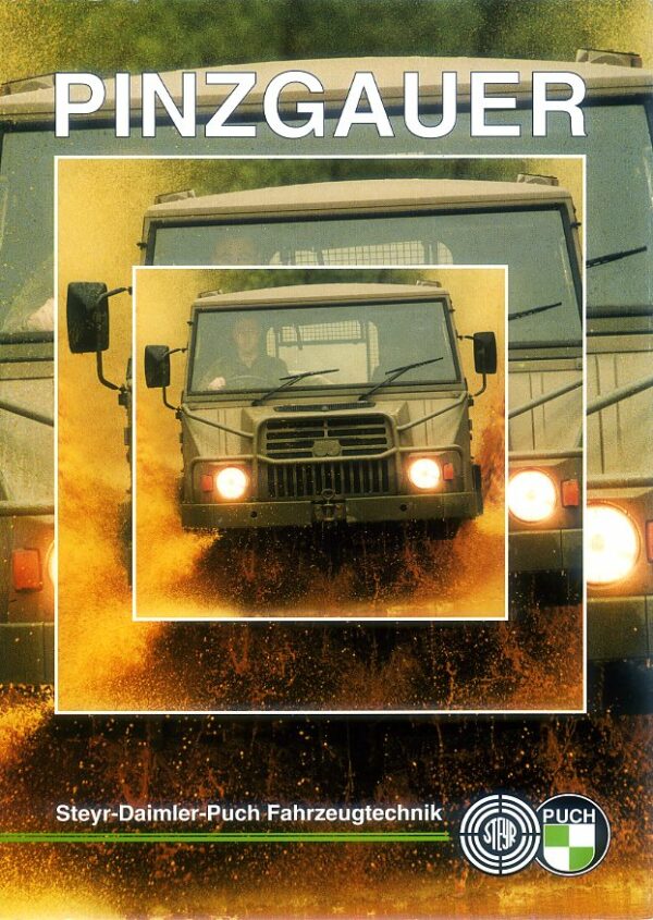 A 6 page brochure for the Steyr-Daimler-Puch Pinzgauer 4×4 & 6×4 military off-road vehicles. It is complete with 2 sided leaflets for the short 4×4, 4×4, 6×6 & fire and rescue vehicles. The brochure, which dates from the late 1990s, is in excellent condition apart from some very minor staining to the top edge while the leaflets are in mint condition .