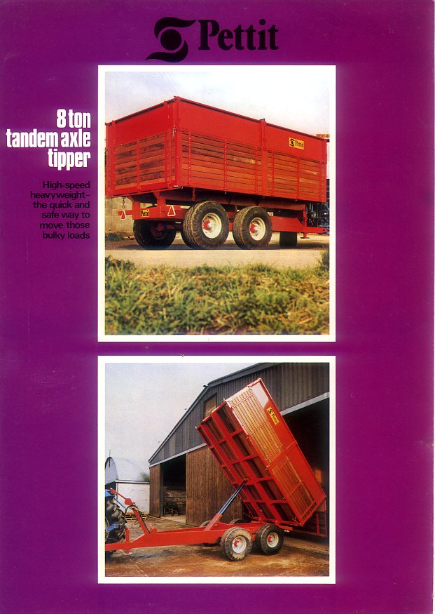 A 2 sided leaflet in excellent condition for the Pettit 8-ton tandem-axle tipper trailer, dated 1978.