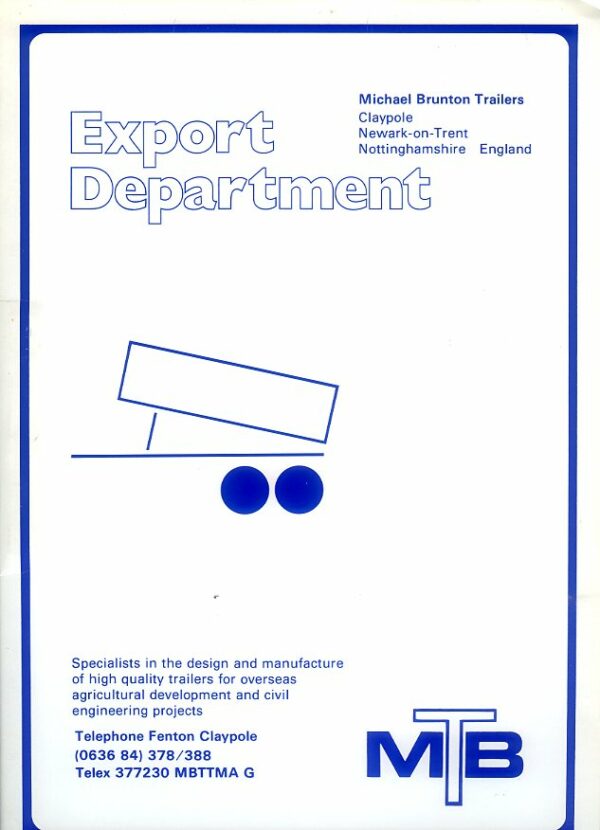 A folder containing 10 leaflets in mint condition for Michael Brunton trailers for agricultural, overseas & civil engineering applications.
